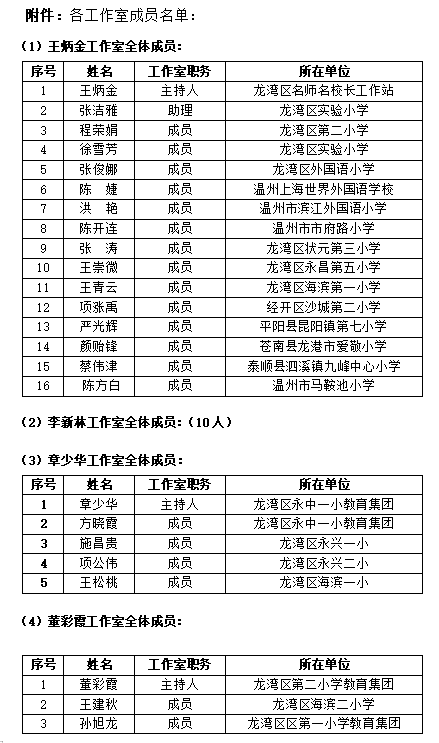 为此,特举行龙湾区王炳金名校长、李新林名校长、章少华名校长、董彩霞名校长、周行德名校长工作室联盟体活动,本次联盟活动由王炳金名校长工作室主办。现将具体事项通知如下: