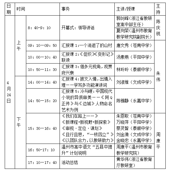 2.线上:“县中提升”所涉及的五个县(永嘉、平阳、苍南、文成、泰顺)的高中语文教研员和高一高二语文教师。