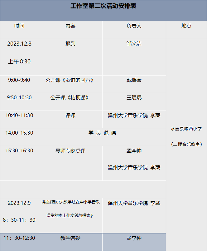 关于举行温州市孟李仲中小学音乐“名师送教”工作室第二次活动的通知