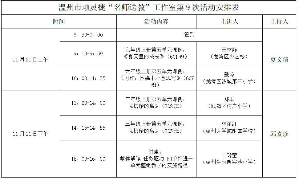 关于举行温州市项灵捷“名师送教”工作室第9次活动的通知