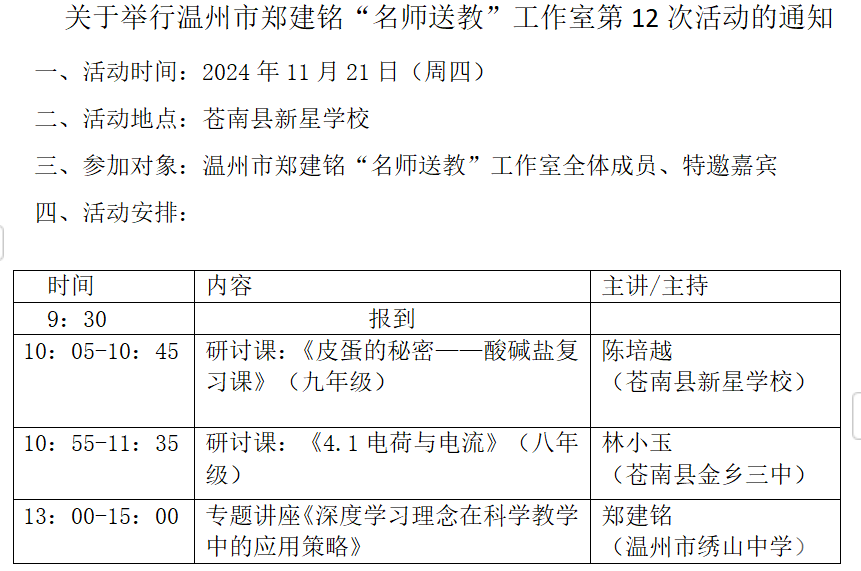 关于举行温州市郑建铭“名师送教”工作室第12次活动的通知
