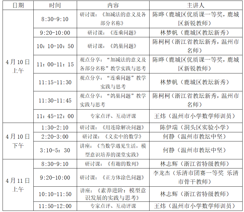 为提升教师专业素养,现决定举行温州市林志辉“名师送教”工作室核心素养之“模型意识”专题研讨活动。安排如下: