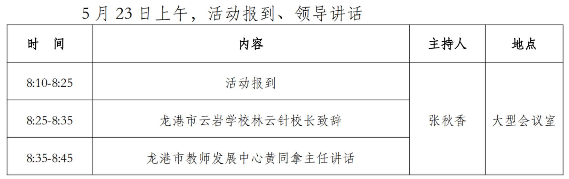 (1)5月22日下午5点前报到,地点:龙港开元名庭酒店。
