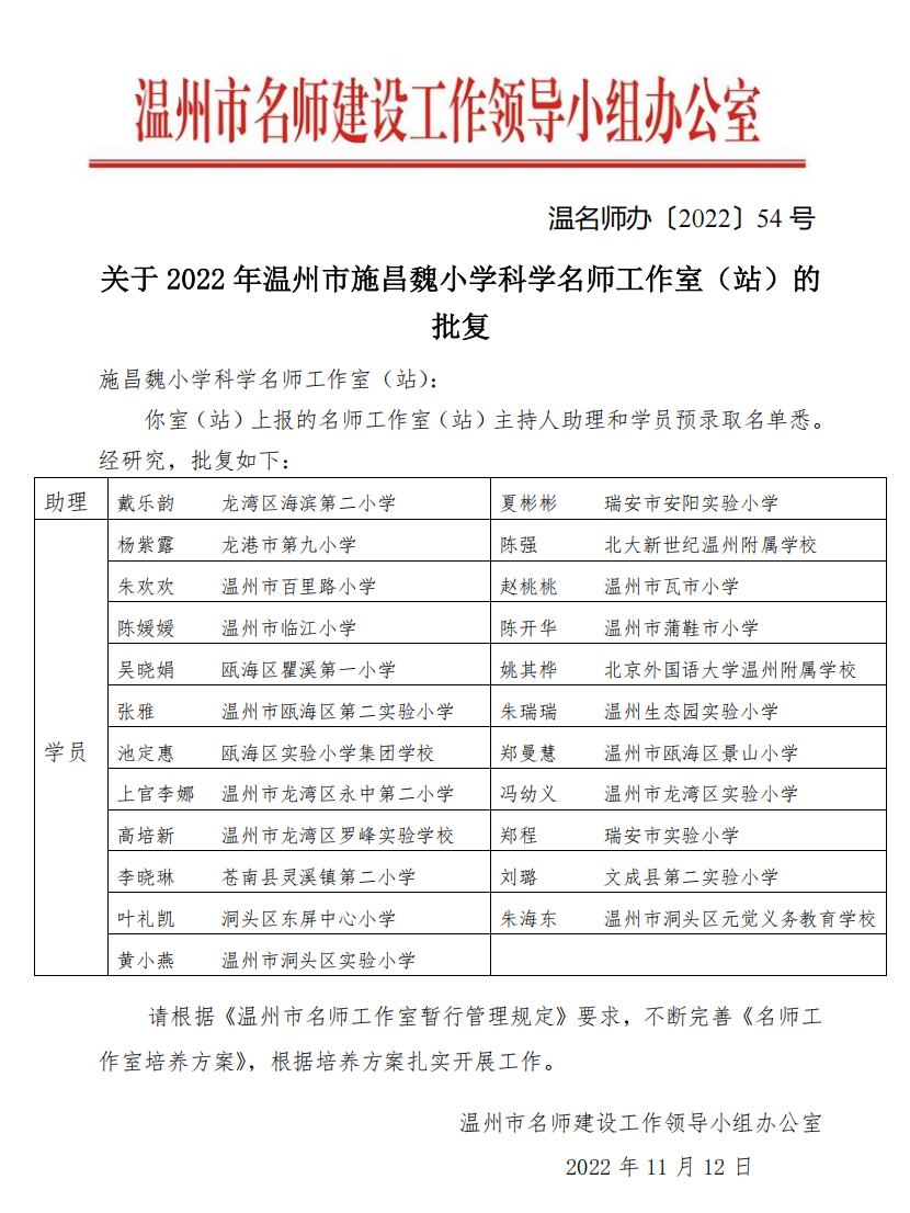 附:施昌魏名师工作室名单
