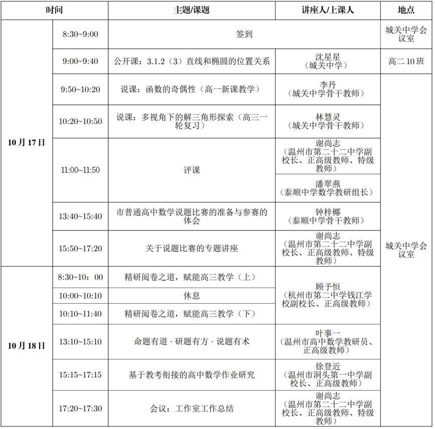 关于举行温州市谢尚志“名师送教”工作室第10次活动的通知