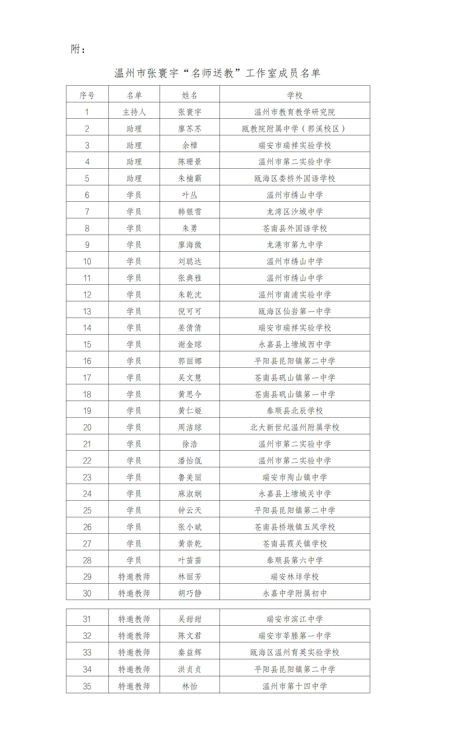 关于举行温州市张寰宇“名师送教”工作室第29次活动的通知
