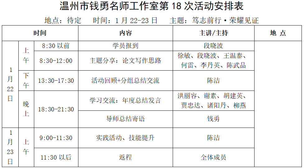 关于举行温州市钱勇名师工作室第18次活动的通知