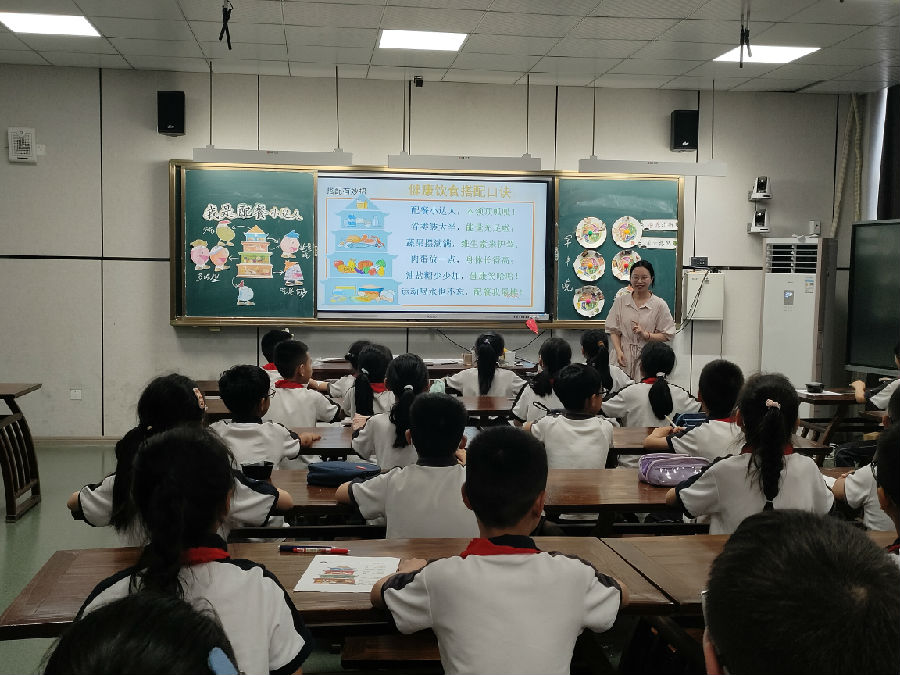 《我是配餐小达人》:泰顺县龟湖学校的邱文丹老师(县优秀班主任)通过生动的课堂,引导学生们认识健康饮食的重要性,并动手实践配餐,培养了学生的实践能力和正确的价值观。课堂上,邱老师以趣味动画引入,展示了因饮食不健康而身体欠佳的两个卡通形象,引发孩子们对合理饮食的好奇。接着,通过生动的“食物大分类”游戏,让孩子们在欢笑中记住了谷类、蔬果、蛋白质等各类食物。在小组讨论环节,大家积极分享自己的饮食习惯,碰撞出不少健康饮食的小妙招。最后的“配餐大挑战”将气氛推向高潮,孩子们用手中的食物卡片,依据所学知识,为虚拟的小伙伴搭配出营养均衡的三餐。在热烈的交流与互动中,“我是配餐小达人”的课程圆满结束 ,孩子们也在快乐中收获了科学饮食的新知识。