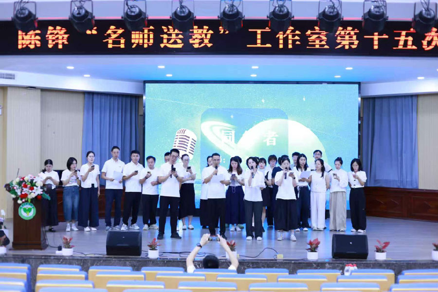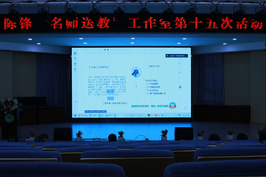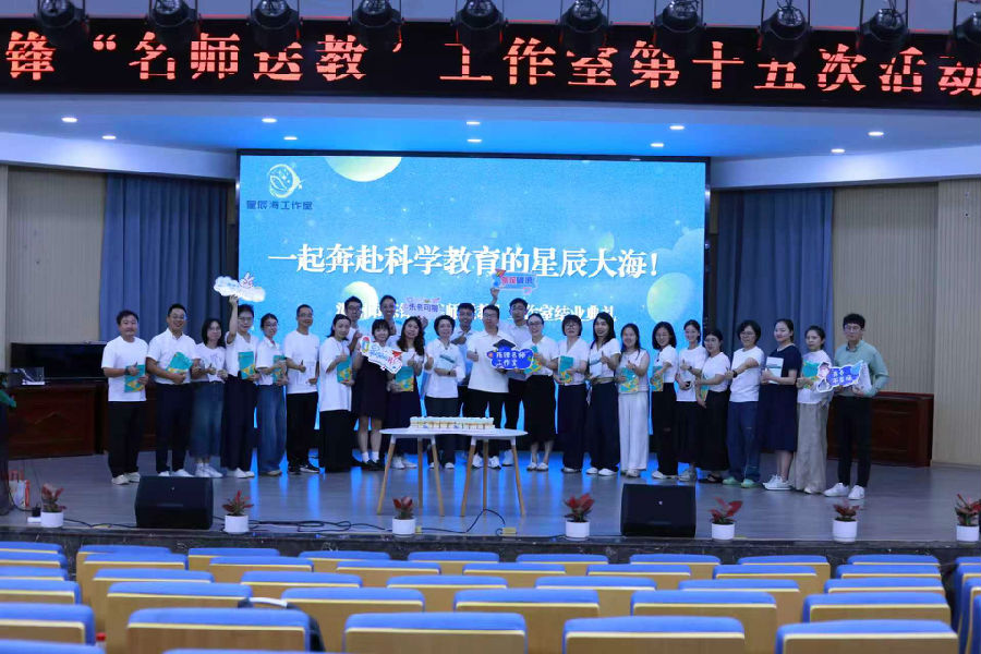 第三个环节工作室主持人陈锋老师作《科学星辰海的研修故事》总结汇报。他对学员们的成长给予了充分肯定,并以“科学星辰海:一场围绕课的成长奔赴”为主题,梳理了“建机制—聚星、干实事—启辰、出成果—绩海”的研修脉络,鼓励学员们做有深度、有故事的教育研究者,将个人实践升华为可推广、可借鉴的教育智慧。
