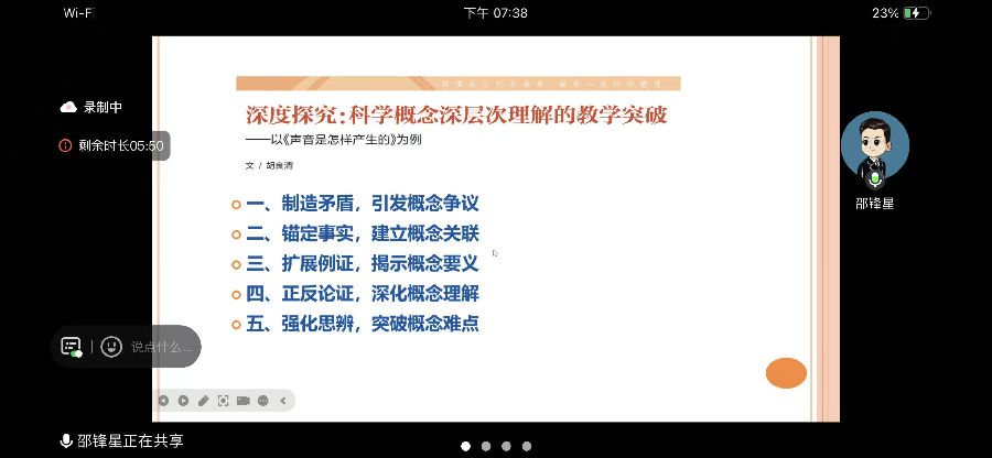 最后邀请浙江省特级教师邵锋星老师在云端作专题分享《从好课到好文到提炼之旅》。邵老师以“思维与实践深度融合”为核心,强调科学课应依托探究实践实现学科育人。他提出,教师应从日常“上好课“,通过“写课”凝练经验,以前沿理论指引教学实践,趋利避害运用新技术推动思维进阶,构建“好课”的实践路径,形成“教学—总结—输出”的良性循环,提供了可操作的教师专业发展路径。