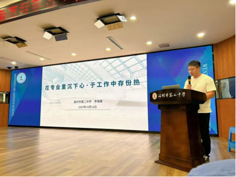李维康老师以《在专业里沉下心,于工作中存份热》为题,讲述了三个教育故事:科学课堂上,他守护学生质疑,引导探讨科学研究方法;在班主任岗位上,用心陪伴学生,努力帮助封闭内心的学生,重拾自信并融入集体;更在学校政教处岗位系统设计校园活动,将活动化为育人现场。他以专业沉淀守护成长,以教育热忱温暖心灵,展现了教育者的深度与温度。