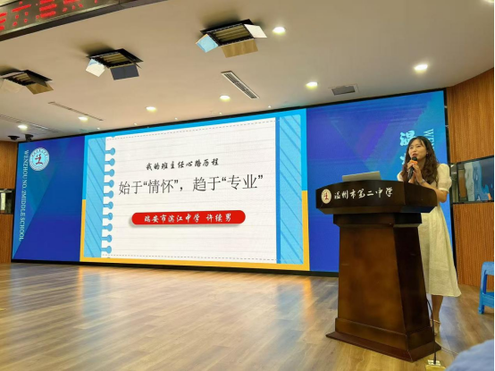 许续男老师以《始于“情怀”,趋于“专业”》为题,分享12年班主任成长路。她从“初为人师的无力感”切入,讲述在班主任工作中逐步提升专业能力的过程,生动印证了“情怀指引方向,专业支撑实践”的育人逻辑。